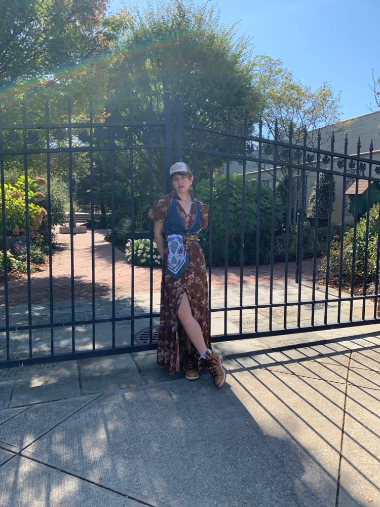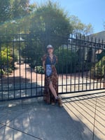 You'll feel like an autumn dream in this stunning maxi dress! The design is simply amazing, featuring a rich copper hue adorned with a deep florals and a fun jackalope print. With its button-down neckline, billowy sleeves, and a stretchy cinched waist that flatters your figure, you'll be ready to step out in style!